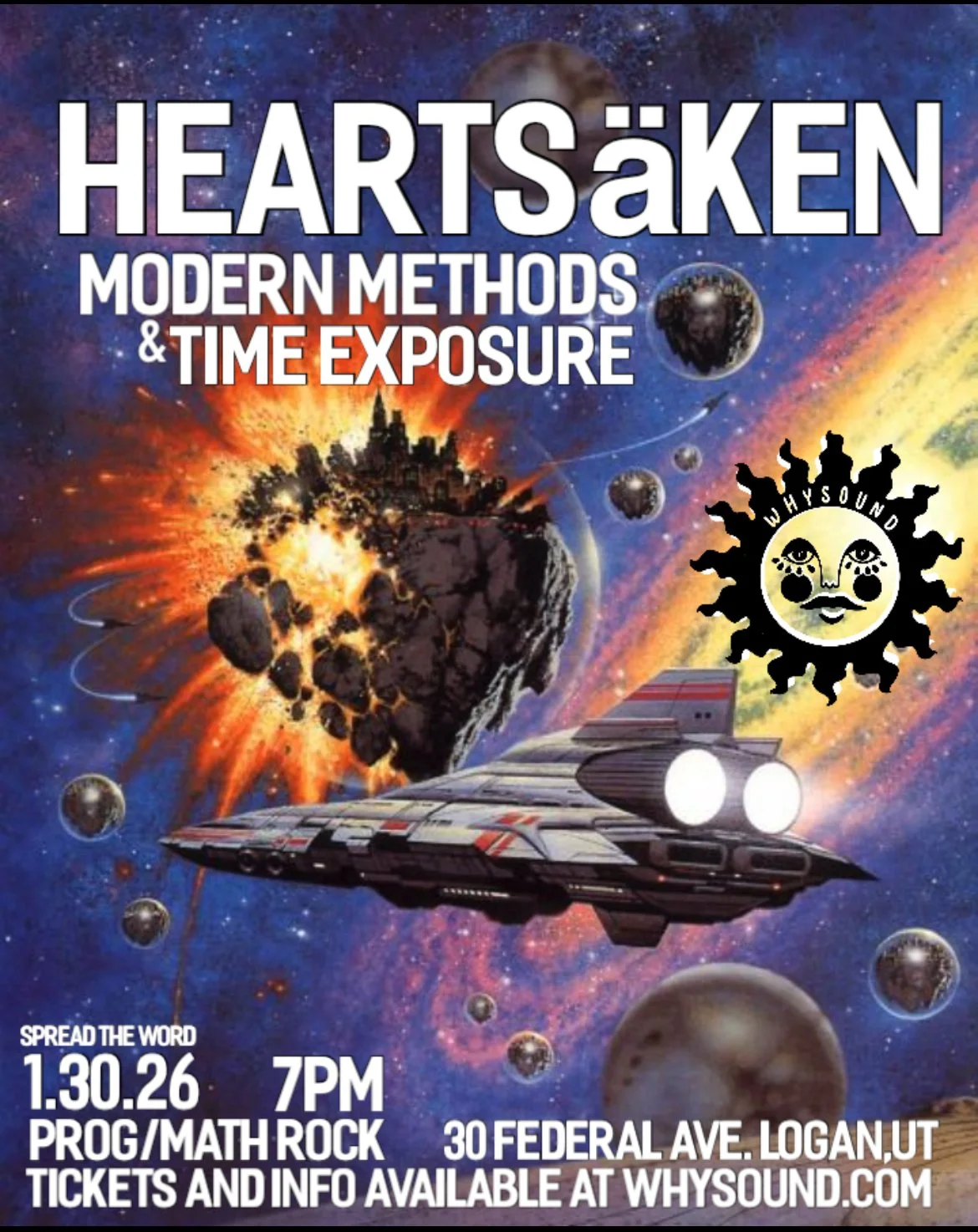 Heartsäken is a prog pop trio from SLC,UT. Blending progressive rocks ambition with indie/post-rock’s textures. This band shows proficiency in creativity throughout each song. Unconventional time signatures, intricate and angular melodies, don’t miss this rare night of prog and math rock! Supporting we have Modern Methods from Pocatello and Logan’s newest prog metal band TIME EXPOSURE has their debut aswell. This show is for fans of:
