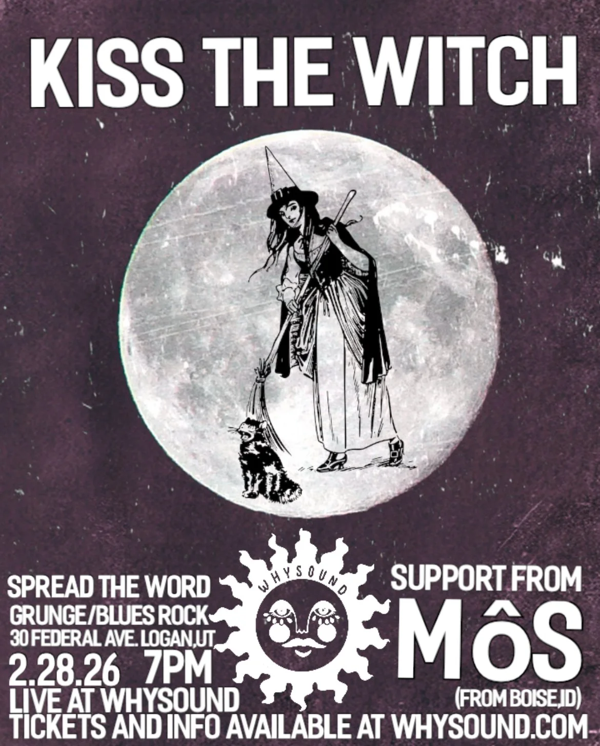 Kiss the Witch is a 3 peice grunge band from Logan. They take inspiration from Stone Temple Pilots, Nirvana, Sleep Cult, and The Osees. If you like heavy guitars, blues rock, psych grunge grab a ticket for this show! Join us to see MÔS from Boise! A desert blues rock band that’s heavy and groovy and not to be ignored!