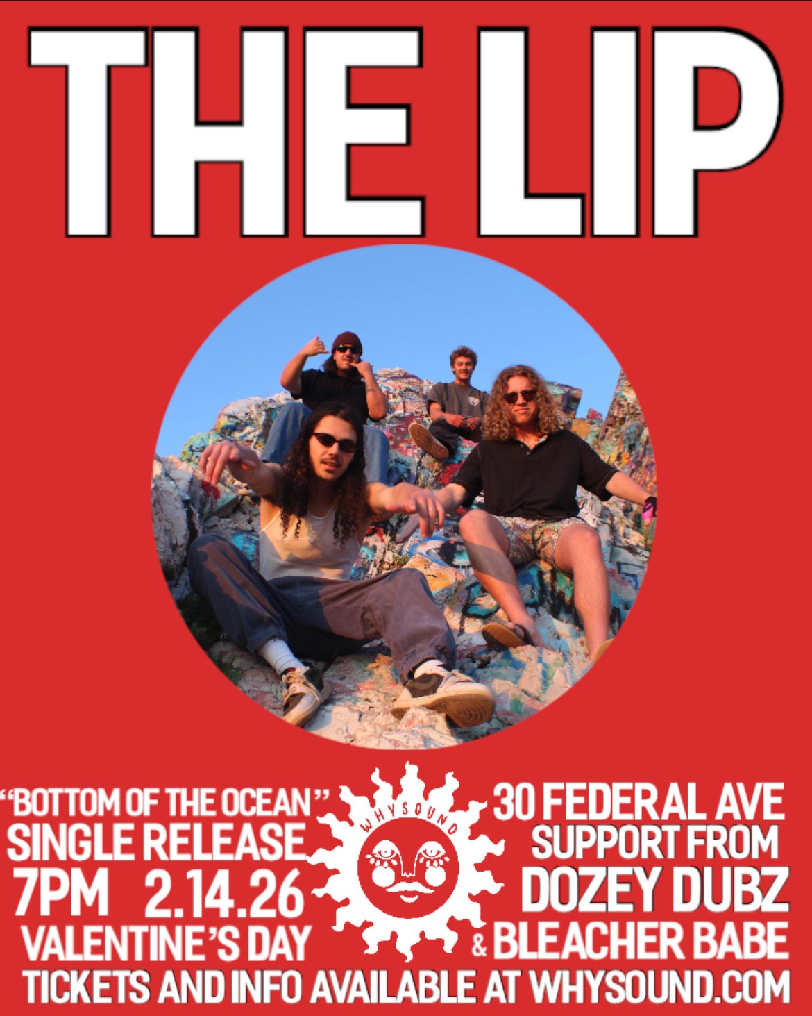 The Lip is an alternative reggae band from Salt Lake City. Led by Tanner Smolinski (vocals, guitar) the band draws influence from genre bending bands like Sublime, Sticky Fingers and Tash Sultana. The Lip's show shines through the warm dynamic of Tanner's vocal and vamps through the punk-y ska handed grooves of Wayne Aggen on the kit, Peyton on lead guitar, and Richie on the bass. Come check out the warm and easy vibes that will give you a relaxing taste of the ocean! The band will also be releasing their new single “Bottom of the Ocean” about love on this special Valentine’s Day show!